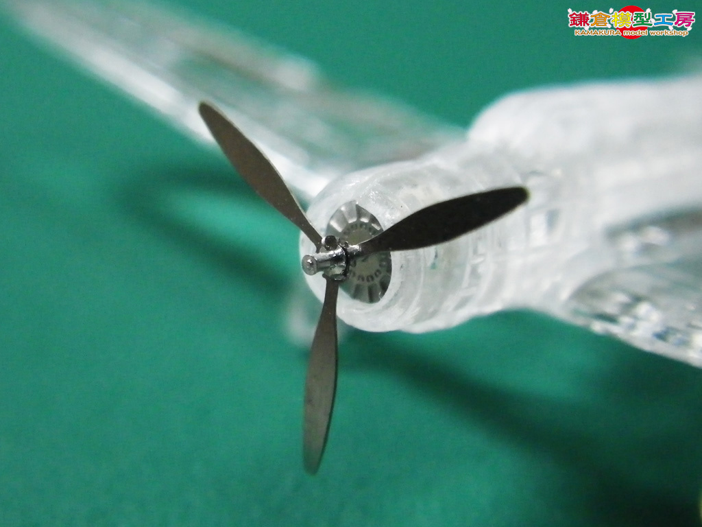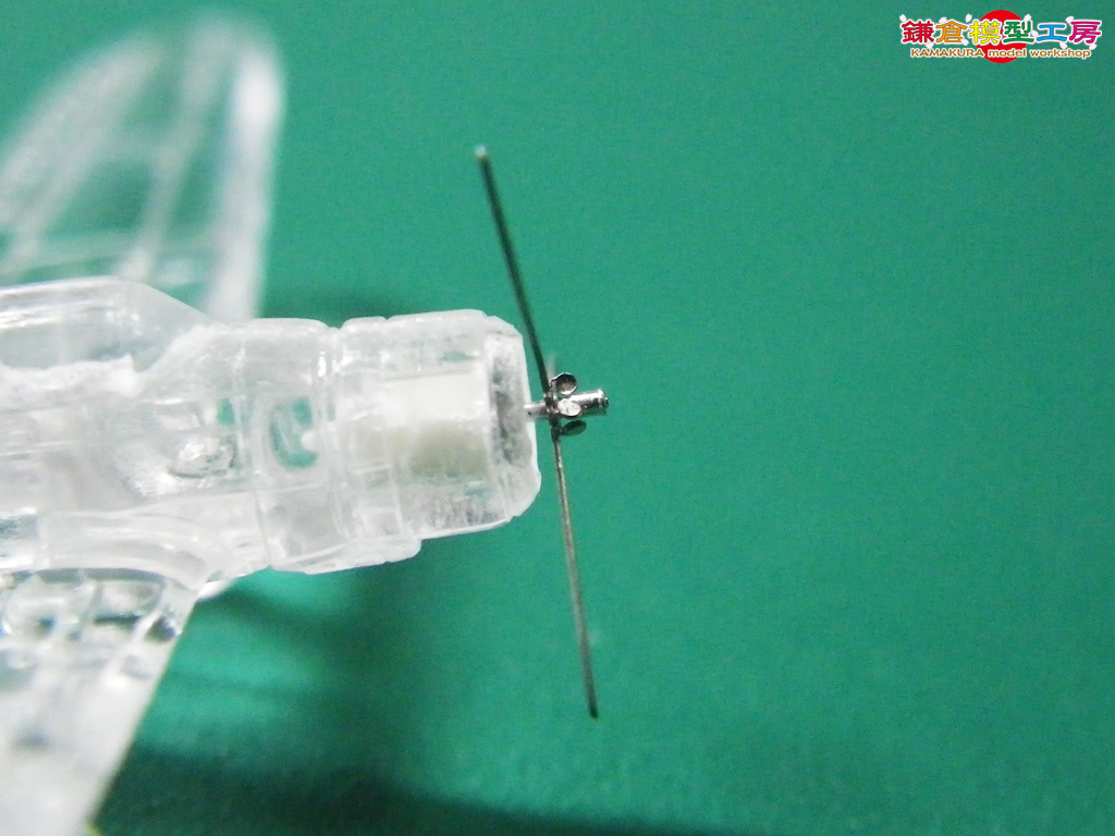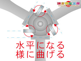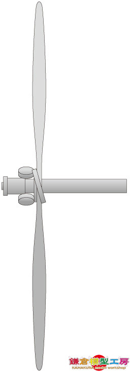 プロペラとシャフトの組み立てバランスウエイトの部分を垂直になる様に根元から曲げて下さい。