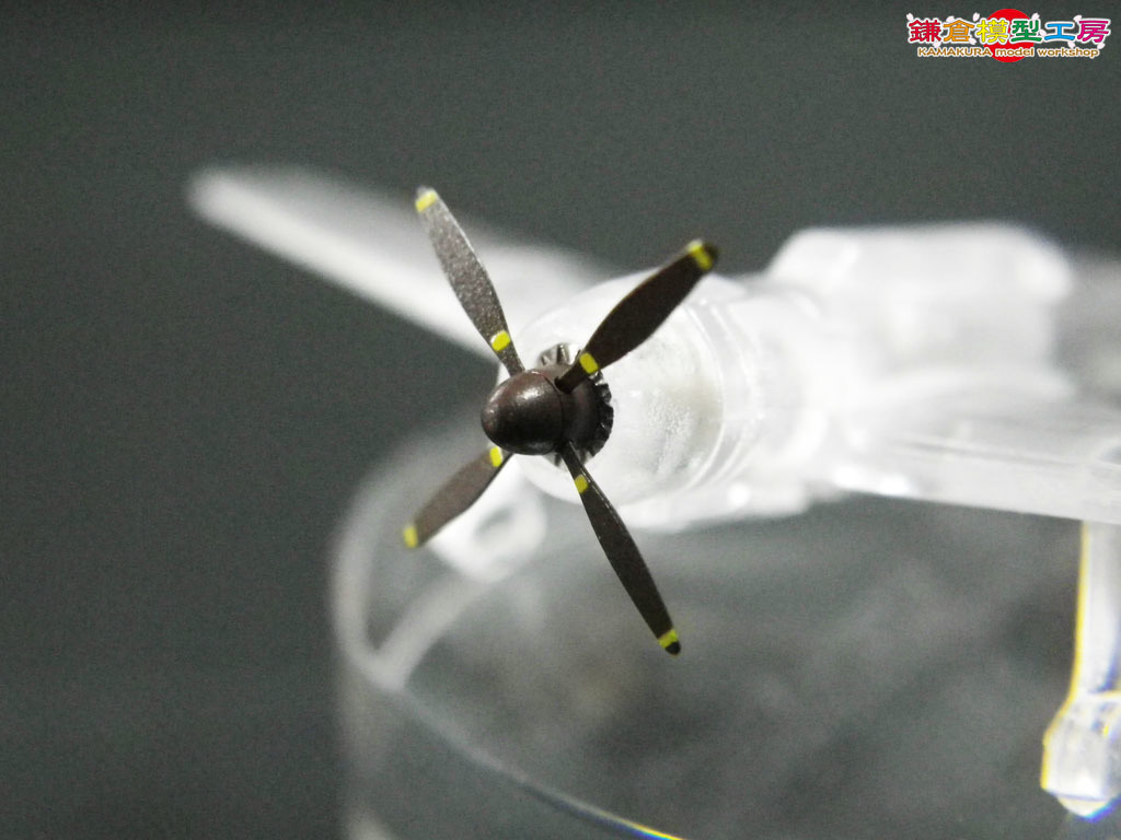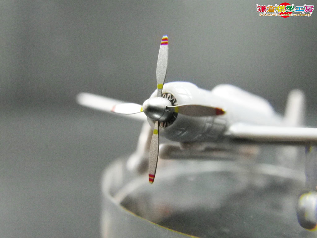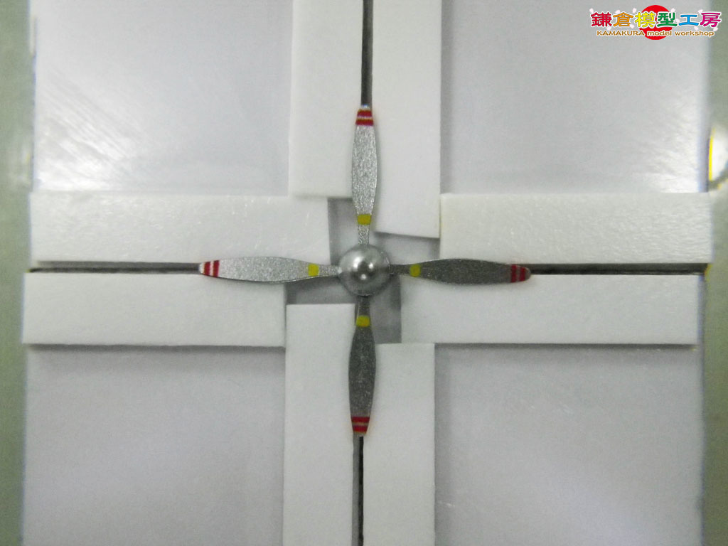 塗装したプロペラとスピナーは、ガイド等を各自製作して均等に取り付けて下さい。