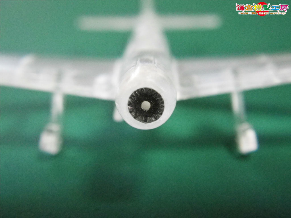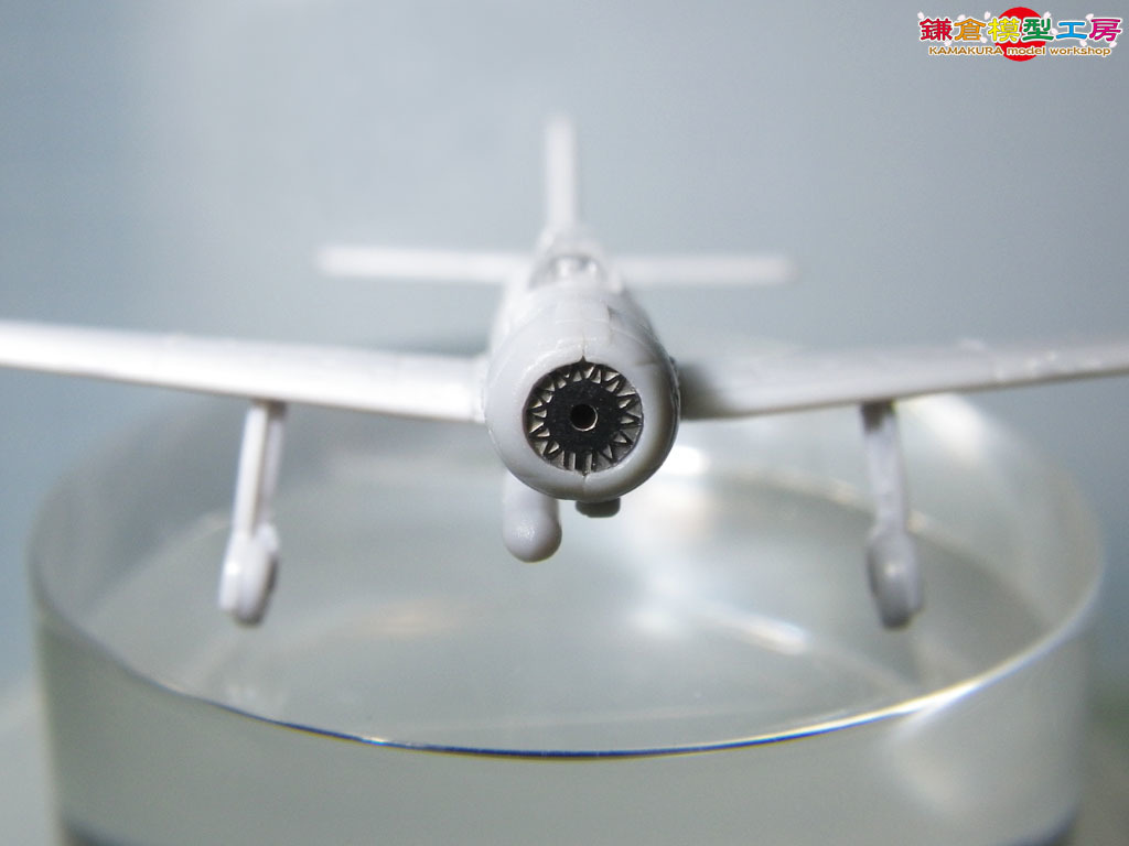エンジンカウルに凹みが無いキットに取り付ける場合は、センターに2.3ミリ径の穴を開け、凹みが0.5ミリ位になる様にプラ棒等で調整して下さい。 センターに0.5ミリの穴を開け、組み立てたプロペラスピナーを各種接着剤にて取り付けて完成です。