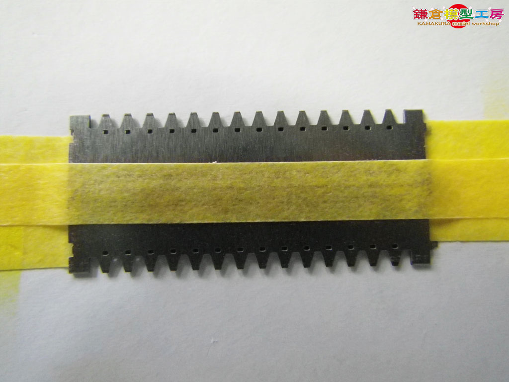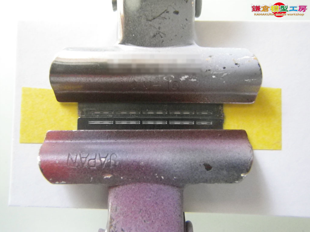 プロペラの塗装が済みましたら枠の折り込みはせず、エッチング枠横の凹みラインを基準にマスキングをして塗装して下さい。